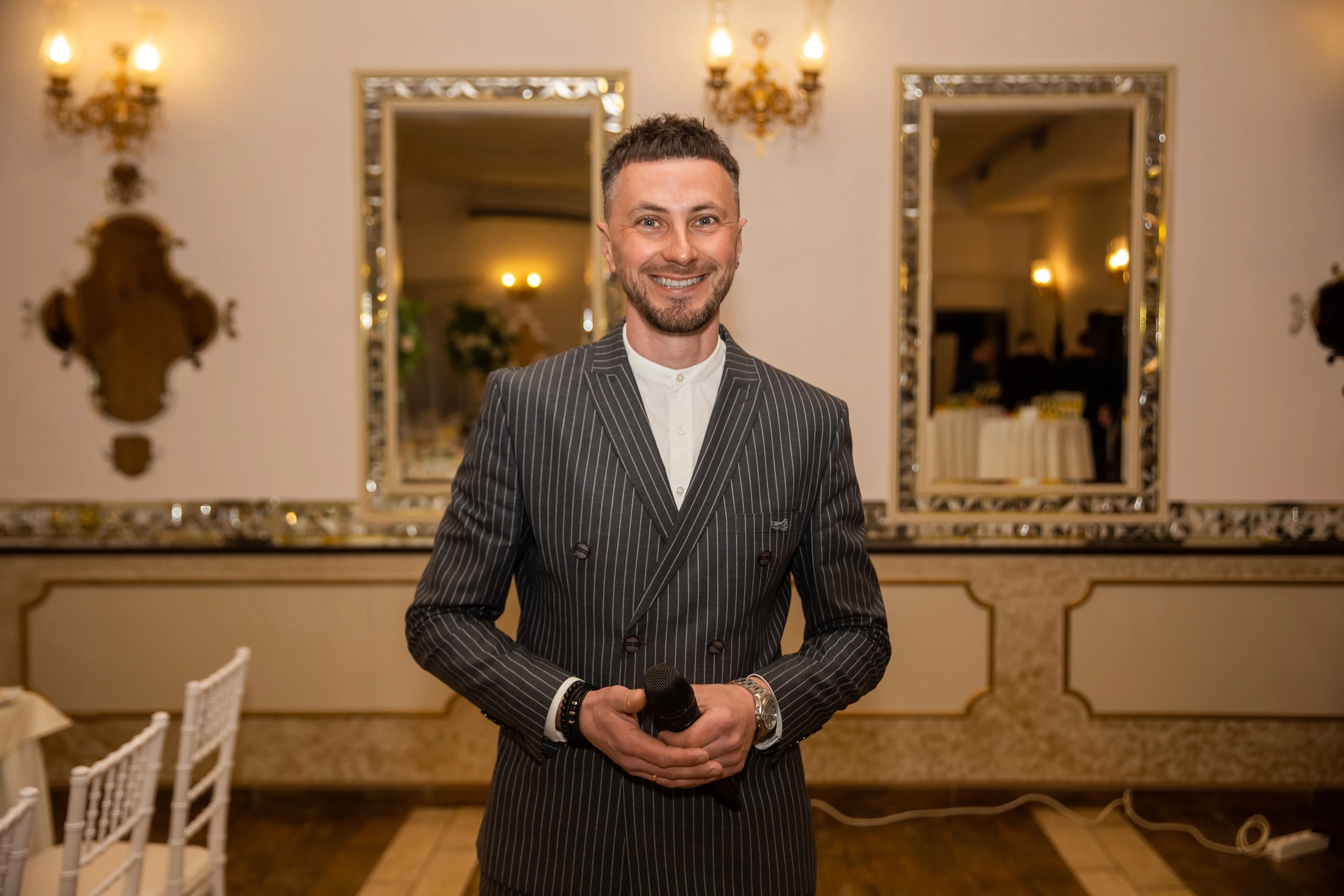 Алексей обязательно даст вам ценные комментарии по проведению вашего торжества, при этом оставаясь тактичным и не навязывая своего мнения. Вы всегда можете положиться на советы Алексея, ведь у него за плечами – огромный опыт работы в развлекательной индустрии: за 8 лет он провел уже сотни праздников абсолютно разных форматов, и на всех мероприятиях хозяева и гости торжества оставались довольны его работой. Все потому, что в каждую свадьбу или юбилей Алексей вкладывает частичку своей доброты, позитивной энергетики и врожденной интеллигентности. При этом ваше торжество обязательно будет модным, стильным и современным, как и сам ведущий.